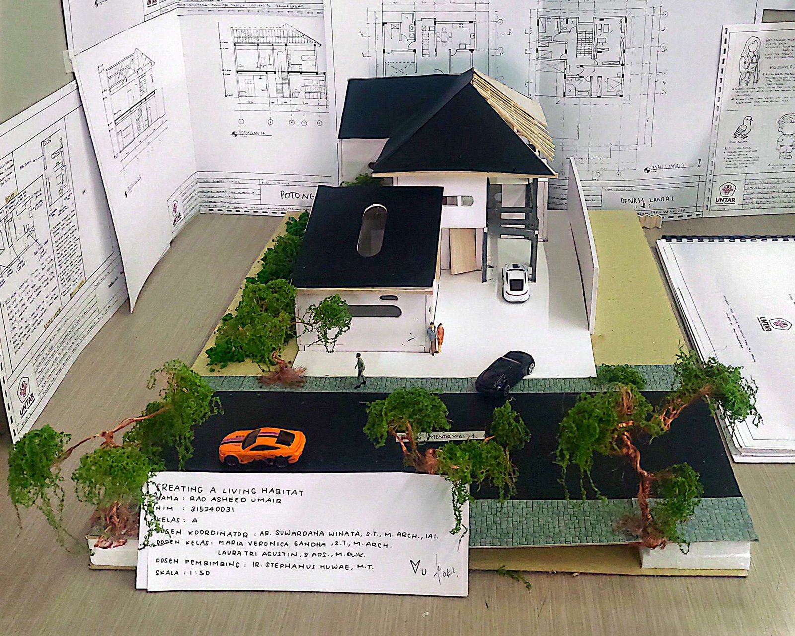 Bangunan ini tetap mengikuti konsep kawasan secara umum, namun hadir dengan pendekatan berbeda melalui penerapan elemen bentuk melengkung. Lengkungan-lengkungan ini memberi kesan lembut dan dinamis, sekaligus menjadi penanda visual yang membedakannya dari rumah sekitar yang berdesain lebih sederhana. Identitas ini diperkuat dengan perhatian pada kenyamanan ruang. Skylight ditempatkan di ruang tamu, yang menjadi area paling ramai menampung orang. Kehadiran skylight ini memberi kelegaan ekstra, menghadirkan pencahayaan alami, dan membuat ruangan terasa lebih lapang serta tidak pengap. Taman tengah turut mendukung sirkulasi udara dan cahaya di seluruh rumah.