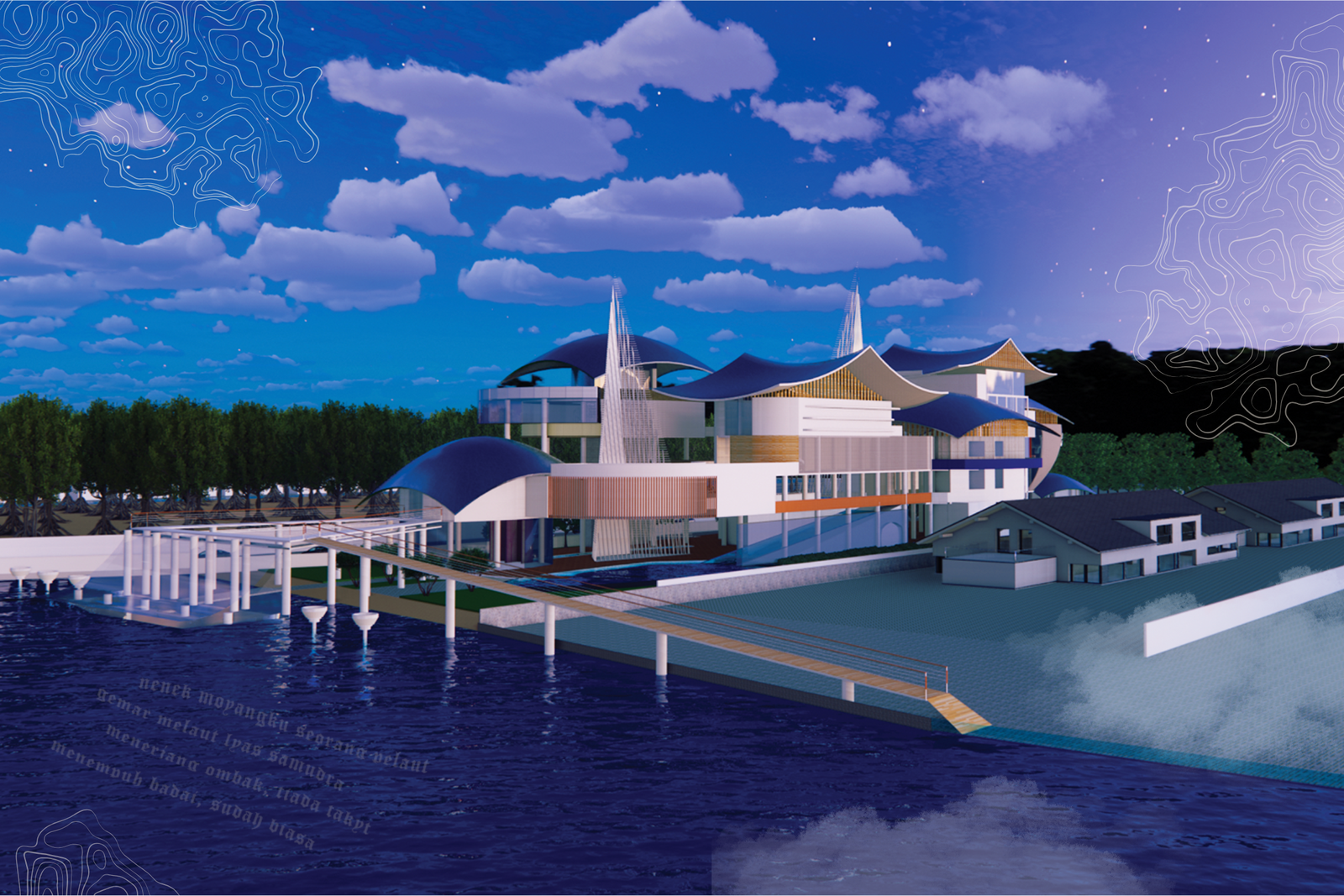 Berangkat dari kejayaan masa lampau kerajaan maritim di Indonesia sebagai kesinambungan dari gagasan masa lalu. Kemudian, dikonsepsikan ke dalam program museum, yaitu galeri interaktif, edutainment, explotarium, dan tinkering studio yang saling terintegrasi membentuk sebuah kisah. Layaknya perjalanan memori, program tersebut menjadikannya “pengantar” proyeksi masa depan sejarah maritim sebagai katalis pembangunan kemaritiman Indonesia.